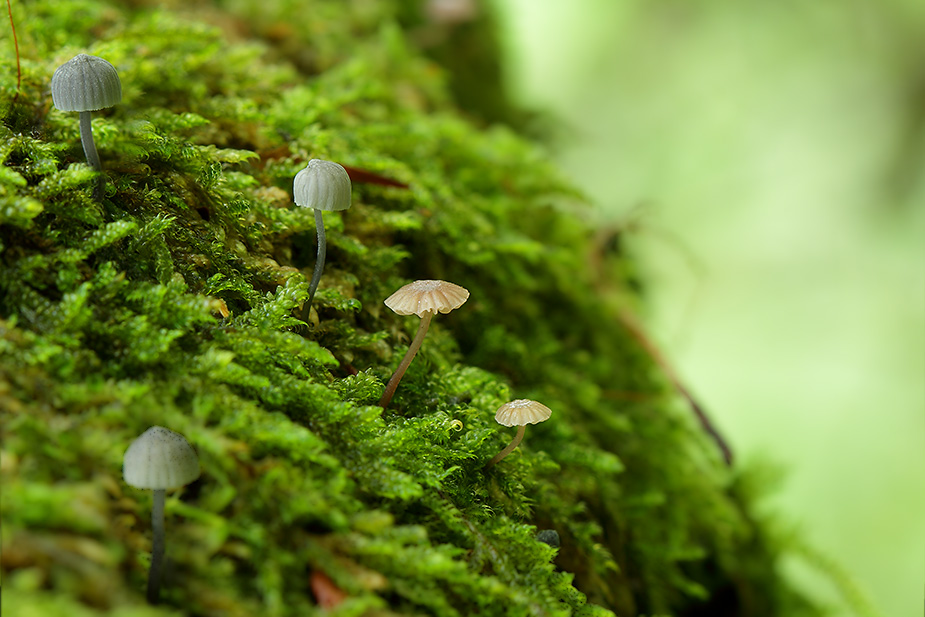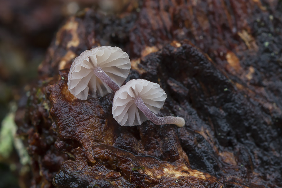 Mycena meliigena – Vinrød bark-huesvamp